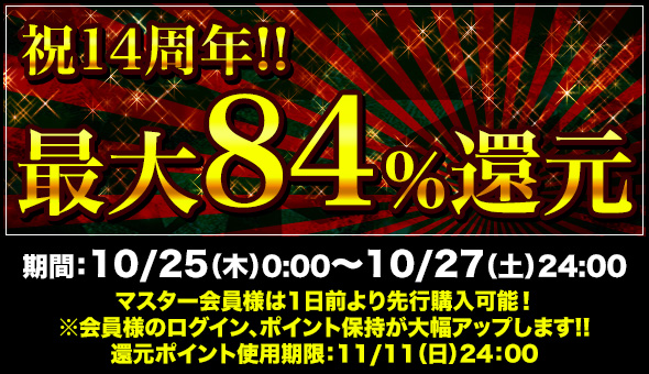 ※還元ポイントは14周年期間内にのみご使用頂けます。